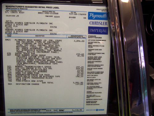 1970 plymouth roadrunner 383 cu. in.(US $37,500.00)
