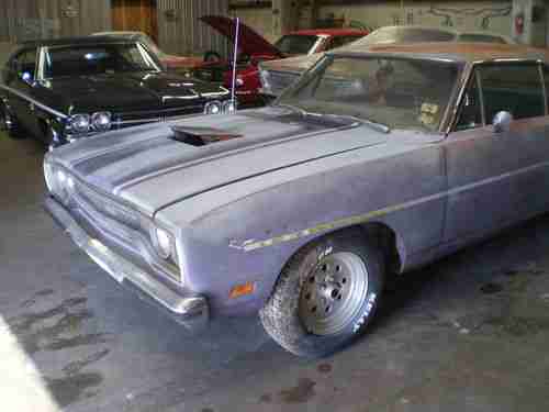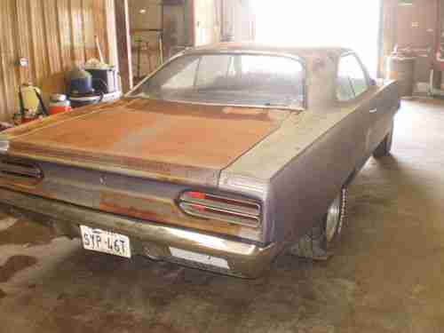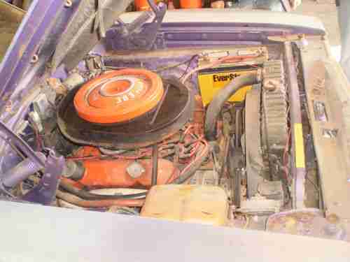 WELL HERE IT IS A 1970 PLYMOUTH ROAD RUNNER 76000 MILLES 383, AUTO TRANS, AIR GRABBER HOOD AND YES ITS PLUM CRAZY PURPLE.YOU WILL NOT FIND A CLEANER STRAITER CAR TO RESTORE THIS CAR HAS VERY LITTLE RUST AND 0 BODY DAMAGE THATS RIGHT NOT EVEN A DENT ITS A REAL MUST SEE CAR AND YES IT IS 100% COMPLETE DOWN TO THE ROAD RUNNER HORN. ALL THE OPTIONS ON THIS CAR ARE THE WAY IT CAME FROM PLYMOUTH AND YES IT IS A NUMBERS MATCHING CAR. ITS A VIRGIN THAT HAS NEVER BEEN MOLESTED OR WRECKED TO MY KNOWLEDGE. ITS THE REAL DEAL. MOTOR WILL RUN I HAVE JUST NOT HAD TIME TO FLUSH THE OLD GAS OUT AND CLEAN THE CARB IT TURNS OVER FINE BUT HAS NOT BEEN STARTED IN 2 YEARS.CAR HAS NOT BEEN TAGGED SINCE 2000 . THIS IS A REAL MUST SEE CAR THE PICTURES REALLY DONT DO IT JUSTICE SO COME SEE IT AND NO TIRE KICKERS SERIOUS BUYERS ONLY. IF YOUR A SERIOUS BUYER SEND ME YOUR NUMBER TO SET APP TO COME SEE IT.BID WITH COFIDENCE MY FEEDBACK SAYS IT ALL I DO NOT SELL JUNK . YOU ASK A QUESTION I WILL NOT BS YOU. THANKS FOR LOOKING. I RESERVE THE RIGHT TO END THIS AUCTION AT ANYTIME SINCEIT IS FOR SALE LOCALY