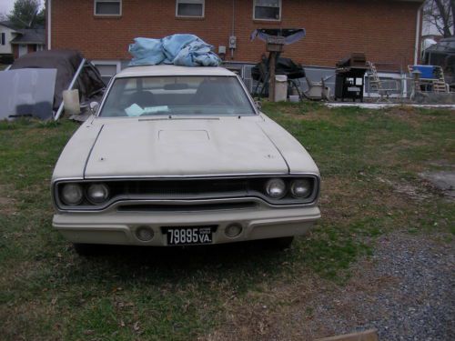 it was a factory 383 car automatic now has completely rebuilt 440 with a new set of headers all new internal parts factory intake with elderbrock carb aluminum fuel line a 727 automatic trans car is mini tubed with aluminum floor in trunk and were the back seat was the car Duse need quarters have extra hood to go with it battery has been relocated to the trunk with a 15 gallon fuel cell holly fuel pump there is sound deadening material installed in the floor it has a set of leather racing seats in it with a b&m shiftier msd ignition original instrument cluster and wiring harness is still there. dana 60 rear with new 5.56 gears and spoil has a set of aluminum craigers 3.5 skinniness on front and 15x10 on the rear it dues need tires will hold air for about two days if you have any further questions please feel free to contact me at 540-521-2544
