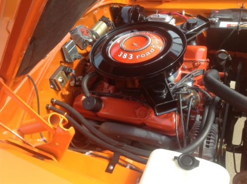 Body : Factory EK2 car painted vitamin c orange ,car had been garaged for thirty years till i purchased in 08 .I had quarters and trunk pan installed professionally and painted base coat clear coated.Never wrecked and any rust. Car has.had all new front steering components installed and an alignment. The brake system is all new, Booster and MC, Pads,rotors,drums,lines,hoses,everything. the fuel system is all new, Tank, line, sending unit. The car has to much to list, The car runs and performs great. Driven on good weekend days to cruise ins and just loafing. Original Bumpers have been Rechromed. Come and look at this car and drive it, And you will buy it. This car has been gone thru from front to back. The car has a few nicks,Nothing that is noticible,This car is driven often. All brackets, K frame, and Etc has been blasted and painted. The underside of the car has been cleaned and painted with POR. If you have any questions, Feel free to call after six pm weekdays, Anytime on Weekends. 304 429 8345 383 hp engine rebuilt with 6 hundred miles since rebuild. Non number matching 383HP, Date correct engine, Rebuilt 727 Transmission., Dana 60 rear end, 354.power Trac, New Axles,Gears, Rebuilt unit, and all bearings. Car is for sale locally and can be removed at anytime. |