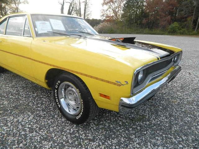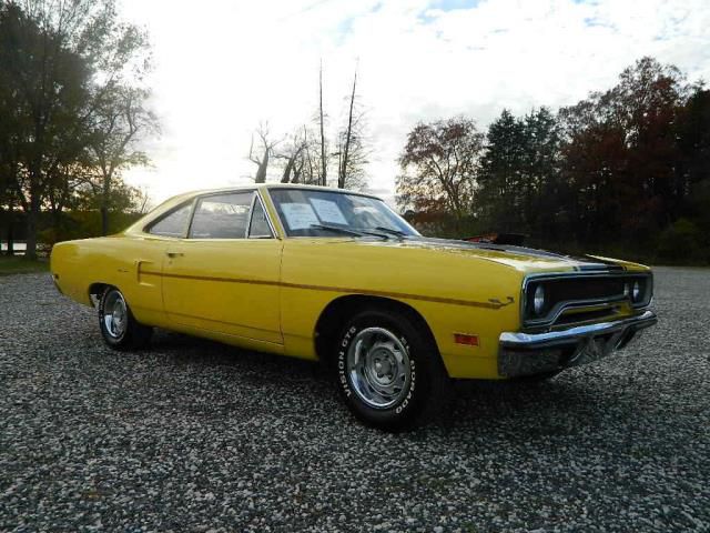 Email me at : su4kleinnebbish@vfemail.net 1970 Plymouth Road Runner Specifications: Year: 1970 Make: Plymouth Model: RoadRunner Color: Yellow Miles: Vehicle Description 1970 Plymouth Road RunnerFactory 383 4spd N96 Air Grabber Lemon Twist Yellow. Numbers Matching Engine and transmission. Factory ordered with the following: RM21: Plymouth Medium, Road Runner 2 Door Coupe N0A: 383 330HP OR 335HP1-4BBL 8 CYL 1970 Lynch Road, MI, USA 228599: Sequence number E63: 383 cid 4barrel V8 H.P. 335hp D21: 4 Speed Manual Transmission FY1: Lemon Twist ExteriorColor M2X9: Trim - Opt. Decor Group, Vinyl Bench Seat, Black TX9: Black Int.Door Frames 513: