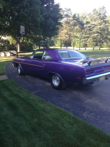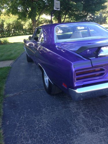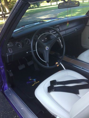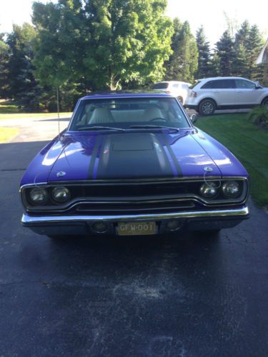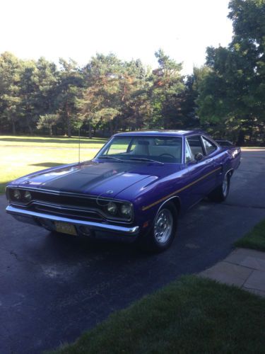 I have done nearly all of the restoration myself and have many pictures saved while in process. Resto was completed in 2013 and have all receipts. The car started life as a 383 3-speed but I have converted it to a 440- six barrel. The only thing not exact to factory specs is a subframe and the mini tub of the rear wheel wells to allow for the wider tires which are Mickey Thompsons on Greg Weld Aluminum wheels. It has been driven very little, only locally. Stored indoors year round. Car won 5th place at the 2013 Detroit Autorama in the 70-72 restored class. Gorgeous car, hate to part with her but have other projects. Fender decodes as follows: RM21N0A - Plymouth Road Runner , Medium, Two door coupe, 383/335hp, 1970, Lynch Road E63 - 383/335hp D12 - 3 Speed manual FC7 - In-Violet Metallic Exterior FC7 - In-Violet Metallic Roof P6XW - Trim, Premium Vinyl Bucket Seats, Black/White EW1 - Whit Int. Door Frames A09 - October 1969 Build date Added Features: AM/8-Track Air Grabber Tic-Toc-Tach Go-Wing Pistol Grip shifter Center Console Please e-mail for questions. |