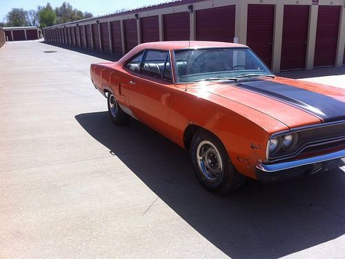 Im selling my 1970 RR 383HP 4 speed 3:55 suregrip. vitamin C orange. The body only has little over 42,000 on odometer and from what i learned from previous owners thats correct. the motor is NOT numbers but is 70HP and trans is a 1968 the best i can tell 23 spline. the rear is the original with 1970 dated gears. The 383 is all new .40 over 0.10 under on mains and rods, correctoil pan and new HV oilpump, double timing chain comp cams 280/480 K-kit. 452 heads with harden seats, new RPM intake, new holley 750 double pumper, correct HP manifolds, rebuilt orig alternator, all new hoses belts, etc. Trans was completely rebuilt as well at local shop. new shifter, nice original pistol grip shifter, new boot, new hays 11in street/strip clutch KIT ,new U joints on driveshaft,new speedo cable, all new wiring except underdash and it is like new,NEW fuel lines, gas tank and sending unit. new rear shackles, all 4 new shocks, rearend has all new bearings and races and axle bearings, drums were turned and all new brake components were installed. new disc brake conversion on frontend. K member was dropped and all frontend was powdercoated black and front framerails and firewall was painted 2 stage,new frontend kit was installed,all new brakelines,hoses, mastercylinder, every piece on this car has been rebuilt or replaced NEW!! NEW bumpers, bumper guards, front park lights, roadrunner horn, wiper motor sent off and rebulit by passion for mopars, powdercoated bumper brackets, all firewall electronic components are new, new mini starter, new electronic dist kit. with brainbox new drivers mirror, new hood turnsignals, new wheels, tires, lugnuts, new legendary seats, new door panels,new carpet, new headliner, new door handles, window cranks, new hood seals, and rubber bumpers kit,new trunk seal not installed,new hood insert gasket,new amd trunkpan, trunk extensions, trunk brace, shackle mounts, new back bumper mounts, new lower patch panels on rear that still need body work. needs new windshield. all guages except tach works great. tach may work havent hooked it up. there is a pile of recieipts with this car. the original am/fm radio plays great. new 2 1/2 exhaust installed. this is original paint on car. this bird runs and drives AWESOME!! i hate to sell it i have spent so much time and money but i want another car ive been trying to locate for years and my interests have changed. all this car needs is drove and finish body/paint when ready. title in hand. all body tags are there and match title. all original pieces that came off car good or bad go with car and extra parts ive collected. OVER 30K INVESTED!! MY LOSS YOUR GAIN!