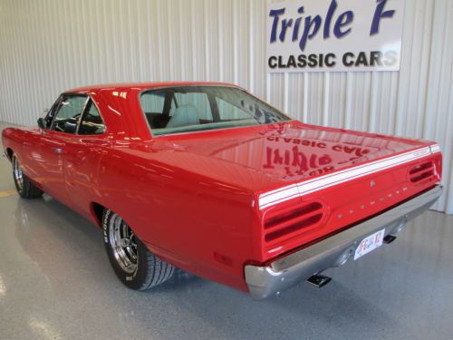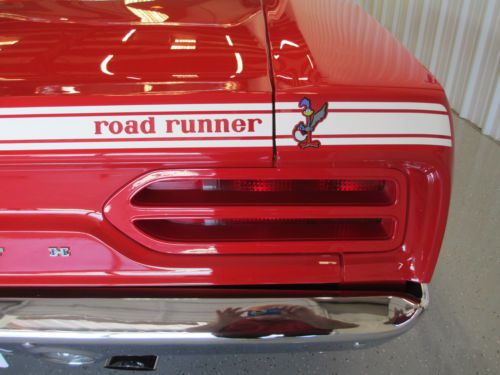 1970 ROADRUNNER VIN# RM21NOA226939 RALLY RED (wet sanded and buffed to perfection) WHITE INTERIOR BUCKET SEATS 4-SPEED TRANSMISSION (A-833) ICONIC HURST PISTOL GRIP SHIFTER 355hp/383cid 4bbl. NUMBERS CORRECT ENGINE POWER STEERING "BEEP" "BEEP" HORN 2-SPEED WINDSHIELD WIPERS w/ washers 150 MPH SPEEDOMETER/GUAGES FACTORY AM RADIO RALLY WHEELS B.F.GOODRICH TA RADIALS (new) This is a meticulously restored ROADRUNNER of collector quality. NO apologies here... High quality restoration with a equal ride and drive ! Only 7993 of these piller coupes were built with 4-speeds and probably not many left. Email or call us with any Questions. Steve 817-296-2521 or Paul 972-740-2275 |