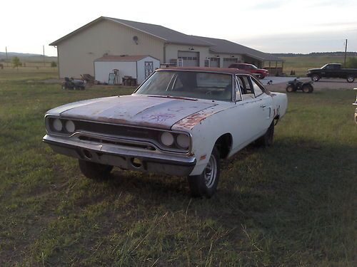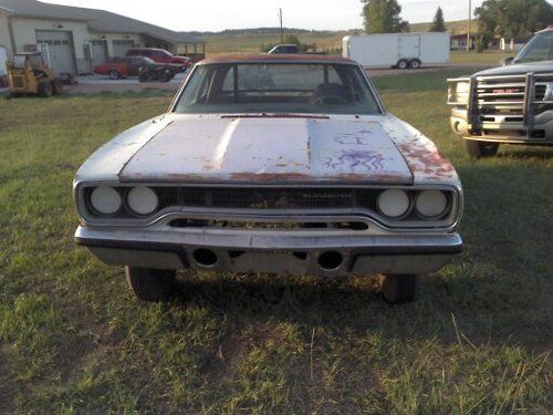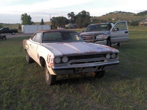 1970 plymouth roadrunner, been in a private collection for many year,originally white with blue top blue interior, the car is very solid with the only rust on the rear quarters behind the rear tires and a little by the back window, would be an easy fix with patch panels, floor pans are solid with no rust, trunk floor very solid, doors very solid,fenders,hood,trunk all solid, there are some dings and dents but all very minor,grille is nice