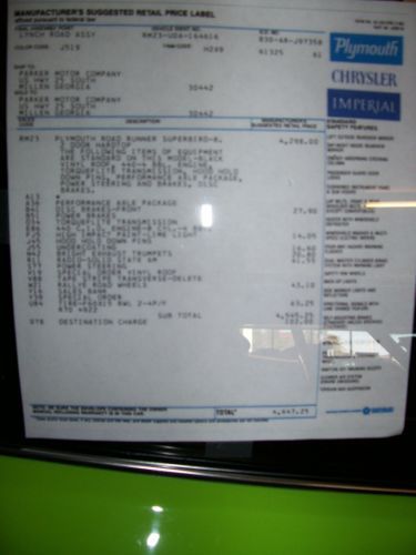 Investment grade road runner a12 440 six pack 4 speed(US $129,900.00)