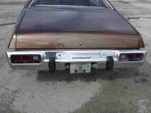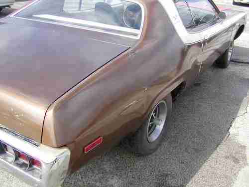 I"m selling a 1973 Road Runner for a friend. Great project car. Original 400 four speed car and has solid floors and trunk.The floor on the drivers front has been replaced professionally. Along the life of this car the four speed was removed and a automatic was installed. The floor was not cut up or damaged during the removal. The four speed shifter hole has a cover only and the automatic shifter bracket was tack welded to floor. The car is being sold as is. The front fenders and doors are in good shape. The rear quarters need work as seen in the photos. The original 8.75 rear axle has been removed and a 8.25 installed,in its place. NO MOTOR OR TRANS CAR IS SOLD AS SEEN IN PICTURES.