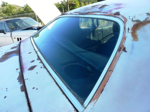 This rust free 73 big block Road runner was rescued from a salvage yard after being picked and poked by forklifts for over 15 years. All of the rust free body panels are rough to very rough from the usual reasons but especially the forklift. The hood, which is pristine, and the roof missed getting the tines and are very nice. The rust free floor pans and trunk have a few dents from the forklift abuse that can be seen in the pictures and video. The right rocker panel will need some careful rework due to the forklift sessions. The K member shows damage from forklift tines as well. Both valances have major damage. The rear quarters have filler from previous body work and slap hammer pull holes as does the deck lid, but are virtually rust free with one small perforation at the right lower rear quarter due to debris trapped behind the panel. I would suggest replacement of valances, quarter panels, doors and front fenders to get this restoration going. The unibody is sweet rust free California goodness excepting the above. The firewall still wears its silver mist metallic paint. This car was well optioned originally and still retains its original E68 400 cu in HP big block and 727 auto with slap shift. The bumpers are passable but could use restoration. The front grill is complete but has some small cracks. The headlight bezels have dents and scratches. The rear tail light bezels are complete as are the lenses. The original tinted glass appears to never have been removed and is in excellent condition, making me wish I knew the real mileage on this car. The window mechanisms work well and the doors latch close. The glass trim is present and intact and should polish out. The black bucket seats and rear seat still wear their original covering, but have various rips and tears requiring recover. The seat frames, springs and foam/stuffing is in amazingly good shape. The interior door panels and quarter light panels as well as the kick panels are in un molested good shape. The center console is missing as is the T handle for the shifter. The shift linkage needs a new actuation rod / repair but is mostly complete. The headliner, visors and rear view mirror are missing but the headliner bows are still intact. The retractable seat belts with housings (front and rear) as well as coat hooks and seat belt hooks are still installed and in good condition. The 120mph dash is in decent shape but is missing the RM21 optioned am fm radio, but the rear speaker adjustment is still present as are the headlight and windshield wiper switches and heater ac controls. The wiring harnesses in the car appear to be original (never un-installed) and complete, and mainly unmolested. The dash pad is cracked. The G36 twin adjustable race mirrors are still one the car, intact and adjustable. The driveline is still original to the car. The 400 cu in motor turns over smoothly with a wrench on the snout but is missing a freeze plug and is wearing the wrong carburetor. I would assume it needs to be rebuilt, as does the 727 torque flite transmission. The 8 3/4 3.23:1 ratio open differential turns smoothly and quietly, but has not been evaluated for driveability etc. The power disk brakes (B41) are intact but never tried (same with the rear drums). The original N41 N42 dual exhaust with chrome tips are missing. The list below of the original options as found on the fender tag (and the car itself!) shows this car to be a very nice candidate for total restoration. While it needs a lot of new sheet metal, hanging it over a rust free unibody is a much more pleasant task than piecing together a car from a rusty VIN. The car is a roller and can be loaded with a winch or a few guys pushing hard. Original Option codes JA5 mist silver metallic paint DX9 black interior E68 400 cu in HP motor D34 torque flite trans with C16 console and C56 bucket seats N41 N42 dual exhaust with chrome tips RM21 AM FM radio with rear speaker H51 A/C L31 fender mount turn signal indicators G36 dual painted "race" mirrors G11 tinted glass A88 interior decor B41 disk brakes M26 wheel lip molding Please check out the youtube video http://youtu.be/1ADq4fHLVqY of my walk around on the car before bidding! Thank You |