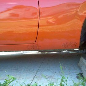 I MARKED THE AREAS ONLY TO SHOW THAT THE MAGNET DOES NOT STICK AS STRONG OR AT ALL IN SOME AREAS. THIS DOES NOT MEAN THAT IT IS ROTTED OUT OR FULL OF BONDO. ITS JUST A GUIDE TO ADVISE YOU WERE THERE IS SOME FILLER. IF I RESTORE THE CAR I WOULD REMOVE