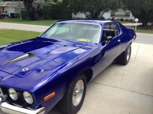 1974PlymouthRoad Runner,machine numbers motor and transmission,with a 360 motor and 727 automatic transmission,411 rear end,HOLLEY carburetor,Ignition MSD Billet & Pro-Billet Distributors,MSD Ignition Coil - Coil Blaster 2,new water pump,power steering pump,gear box,holley fuel pump,electric fan,carpet and head liner all new.motor and transmission are in good condition.engine bay needs a little work as you could see in the video,inside is in good condition the left door panel is off and is in the trunk the back seats may need some work.front and back window are new and the chrome trim,bumpers been rechromend,body is in great condition and paint,the roadrunner and the side stripe are ghost painted you could see it in the video,the car has some surface rust nothing crazy,there are 2 holes in the muffler.back shocks are air ride.i have some extra stuff in the trunk and all the parts that are off the car.