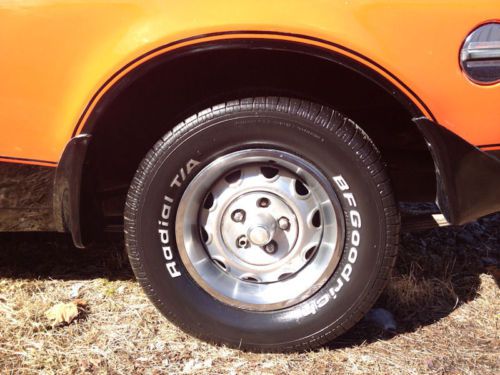 MOPAR ENTHUSIASTS, PLEASE VIEW THIS AD AND THE PHOTOS. THIS IS THE PERFECT VEHICLE FOR THE HOBBYIST LOOKING FOR A HOT ROD NO ONE ELSE HAS. GO AHEAD, GOOGLE IT. SEARCH THE INTERNET FOR 1976 PLYMOUTH ROAD RUNNER WITH SUPER PAK. ONE OF ONLY 6,024 HL29G ROAD RUNNERS BUILT IN 1976, AND ONE OF A MERE 1,903 BUILT WITH THE SUPER PAK OPTION. THESE RARE BIRDS ARE FEW AND FAR BETWEEN, AND THIS ONE WILL COST YOU ABOUT TWENTY FIVE PERCENT OF WHAT A BIG BLOCK FIRST GENERATION WOULD COST. SURE, THE ORIGINAL 318 DIDN'T HAVE MUCH POP. WE FIXED IT FOR YOU! ORIGINAL ENGINE HAS BEEN CHANGED TO A 340 CU. IN. GROUND POUNDER WITH X HEADS, TORQUE FLITE TRANSMISSION, AND 8.25" REAR DIFFERENTIAL WITH 4.10 GEARS. FRESH SPITFIRE ORANGE PAINT, STRIPES, AND DECALS. NEEDS ONLY MINOR INTERIOR WORK. IT DOESN'T GET ANY BETTER THAN THIS FOR THE PLYMOUTH FAN. DON'T MISS THIS OPPORTUNITY TO OWN THIS RARE CLASSIC. Most Baby Boomers remember back in the day that the "rich kids" owned the new Chevelles, Mustangs, GTX's, etc. , and everyone else was transplanting small blocks into Tri Five Chevies. The young segment of America needed an inexpensive mainstream model with an inexpensive special engine. Chrysler executives realized this, and began designing big engine, low frill unibody performance cars. The Road Runner is recognized by many automotive experts as perhaps the second most significant Muscle Car in history, next to the GTO. This amazing machine almost single handedly shifted the market back to the most bang for the buck roots of the movement. The success of the Road Runner would quickly surpass that of the more expensive GTX. Plymouth corporate sales estimate for 1968 was 2,500. Actual sales of the hardtops and pillar coupes was approximately 45,000. In 1969, this number increased to a whopping 82,292 units. Indeed they had hit the mark! The automotive industry praised the simplicity of the concept. In 1976 the Road Runner name was switched to the 2-door model of the replacement for the Valiant series. This car, based on the new F platform, would be known as "Volar?". The new Road Runner was primarily a trim and graphics package; however, many suspension parts were borrowed from the police packages. A 360 CID engine was offered as an option (but only with a two barrel carb for 1976-'77 and single exhaust) to the standard 318 V8, but only paired with the 3-speed automatic transmission The Super Pak option consisted of Road Runner tape stripe, front air spoiler, wheel opening flares, quarter window louvers, and rear spoiler. In the era of gas sipping, puny compact cars, the Road Runner was still able to provide some punch and also an aggressive look for the younger crowd. CLICK ON THIS LINK TO VIEW A PHOTOBUCKET FILE OF 61 ADDITIONAL PHOTOS OF THIS CAR: http://s514.photobucket.com/user/redeuce/slideshow/1976%20Plymouth%20Road%20Runner The body has been refinished in Spitfire Orange. Paint would be classified as high driver quality, not a $15,000 show finish. Finish has been buffed to a high gloss. Blacked out hood, rear valance, lower body, quarter louvers, and spoiler. T/A dual snorkel hood scoop. Blacked out sport grille. Chrome and brightwork in very good shape. Glass is also in very good condition. Single chrome sport mirror, remote. Magnum Road Wheels with BF Goodrich Radial T/a tires, P245/60R14. The heart of this hot rod is a 340 Cu. In. engine. X heads. Edelbrock Competition Series four barrel carburetor mounted atop an aluminum intake manifold. HEI ignition. Eight MM silicone wires. Hydraulic roller cam and valve train. Mopar Performance finned valve covers. Power steering and brakes. Dual Flowmaster exhaust. Torque Flite automatic transmission. 8.25" rear differential with 4.10 gears. TO VIEW A PHOTOBUCKET VIDEO OF THIS CAR RUNNING, CLICK ON THIS LINK: http://s514.photobucket.com/user/redeuce/media/IMG_5325_zps4c7a4532.mp4.html Factory black vinyl bucket seat