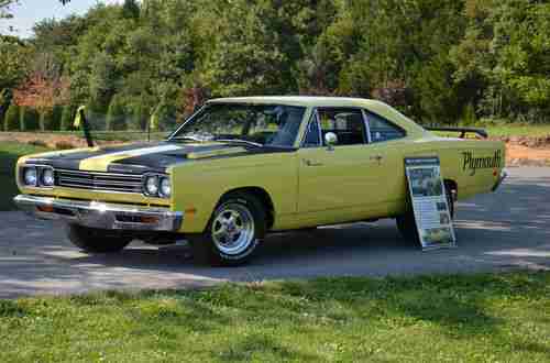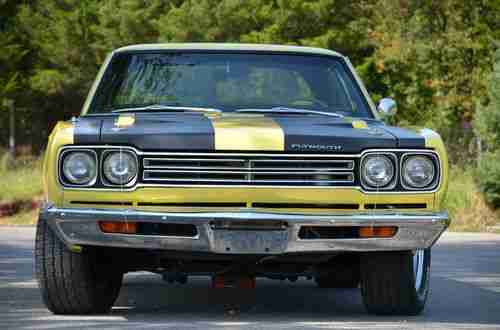 This is a show quality '69 Roadrunner powered by a professionally built 600 HP engine with Indy Racing Heads. The car has beautiful paint with ultra high quality clear coat but the real highlight of this Roadrunner is its motor. The power is amazing but at the same time it was so well built and designed that it is a car tame enough to drive around town if you'd like. The engine starts right up and runs cool and smooth all day while you're out driving. Interior looks great with very high quality restoration throughout. It has aluminum fuel cell tank with baffles (located in trunk). Great tires. Transmission is a manual valve body automatic. So that means you shift it manually through the gears. The builders of this car did it this way to effectively handle the massive power of the engine.