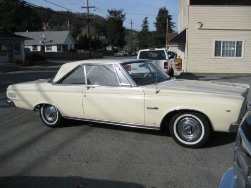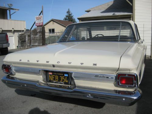 1965 Plymouth Satellite. 318 POLY V-8 with automatic transmission. Manual steering, manual brakes NO A/C. I bought this car from it's original owner a few months ago. It was bought brand new in Sunnyville, Ca. It still has the ORIGINAL CA. BLACK PLATES. Engine was rebuilt with new rings, bearings, oil pump, timing chain and gears, camshaft, cam bearings, new solid lifters and new freeze plugs. . All internals are standard/standard. Heads were redone with hardened seats, new guides, new springs, all new valves and cylinder head decks were resurfaced.. Only 400 miles since rebuild. Engine ran good when I bought it. I ended up pulling the heads because I wanted to install the hardened seats for unleaded fuel. After pulling the heads I decided to just go ahead and freshen up the whole engine. Body only has 115k miles. Car is rock solid and straight. Nice glass, nice bumpers, perfect grille. Paint has been touched up in a few areas. Interior is very nice. The driver seat has some noticeable wear but I was able to get the original material to get it repaired but never got around to it. Radiator should be professionally cleaned still. Especially since it's almost summer. Car is 100% functional . Finally: Please do not bid on this car unless you have the available funds to purchase it. Please get permission from your wife, your mother, your sister or whoever else might be your ruler. Remember, THIS IS NOT AN AUCTION TO COME AND SEE THE CAR. THIS IS AN AUCTION TO BUY THE CAR. I will however be more than happy to show the car to you and yours upon appointment.