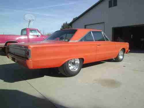 You are bidding on a 1967 pro street plymouth satellite.This car was built right by a professional welder and fabricator,it is built tough with a narrowed dana 60 rear end,35 spline moser axels, and 373 streetable gears.The frame is stiffened with 2x2 steel tubing,it is tubbed with sheet steel and done right.It was built for the street and some occasional bracket racing,it runs 12.70 ETs at altitude in idaho.The body has never had any rust and is very straight.I have a pair of original 67 gtx hood scoops and a couple of gtx emblems(one is bent) if you are interested in building a gtx clone out of this car.the front end was rebuilt with new bushings and rubber parts a few years ago and rarely driven since,it drives straight and runs great.