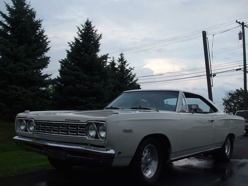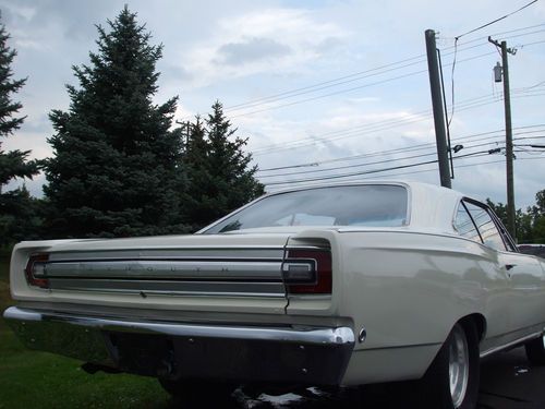 HELLO, UP FOR BID IS OUR 1968 PLYMOUTH SATELITE WITH THE LEDGENDARY 440 ENGINE THAT IS BUILT TO PERFORMANCE!! THE AUTO TRANS IS ROCK SOLID, HAS THE REVERSE VALVE BODY WITH A 3500 STALL, THE DUAL EXHAUST IS BRAND NEW FROM MANIFOLDS BACK, IT IS FAST! AND RUNS AND SOUNDS AWSOME! WITH NO ISSUES, IT IS A SOLID VEHICLE AND COMPLETE,THE INTERIOR IS A B-5 BLUE. THAT IS VERY CLEAN AND COMPLETE WITH NO RIPS AND TEARS HOWEVER COULD HAVE SOME FLAWS DO TO AGE LOOKS TO BE ORIGINAL,THE DASH LOOKS GOOD AS DOES THE HEADLINER.THE GLASS IS NICE AND VERY CLEAN. THE CHROME BUMPERS AND CHROME TRIM IS IN ECCELLENT CONDITION AND SHINES BRIGHT, DO NOT KNOW IF IT IS ORIGINAL, BUT IS IN VERY GOOD CONDITION! ALL THE BODY PANEL LIGHTS WORK, THE BODY IS VERY STRAIGHT AND SOLID,THE DOORS OPEN AND SHUT NICE AND LINE UP GREAT,THE PAINT IS A OFF WHITE WHICH LOOKS COOL AND SHINES NICE BUT DOES HAVE TOUCH UPS DO TO CHIPS AND AGE,THE BODY PANELS,HOOD,TRUNK AND DOORS LOOK SOLID WITH NO DENTS OR DINGS.MY PERSONNEL OPINION THE CAR IS A HEADTURNER AND GETS ALOT OF REACTION FROM PEOPLE OF ALL AGES, TRUE MUSCLE! AT ITS FINEST, DEPENDING ON WHAT YOU WOULD LIKE DO WITH IT!(LOT"S OF OPTIONS). IT IS A GREAT DRIVER AND WOULD BE FUN ESPECIALLY FOR CAR SHOWS AND FAMILY SUNDAY PICNICS! IF IN THE AREA OR WOULD LIKE TO COME AND SEE I WOULD BE MORE THAN HAPPY TO ACCOMADATE BEFORE BIDDING,IF YOU HAVE ANY QUESTIONS ABOUT ANYTHING I HAVN"T DESCRIBED OR NEED MORE INFO PLEASE FEEL FREE TO CONTACT ME EMAIL OR PHONE @ 734 751-1023 DON , I WILL BE HAPPY TO ANSWER ,. IF YOU NEED ANY HELP IN SHIPPING I DO USE A LICENCED AND INSURED SHIPPER AND COULD HELP ARRANGE IN SHIPMENT, WE RESERVE THE RIGHT TO END THE AUCTION EARLY! DONT MISS ANOTHER LEDGEND RIGHT FROM THE STREETS OF FAMOUS WOODWARD AVE, DETROIT MI GOOD LUCK TO ALL AND GOD BLESS EVERYONE!!!