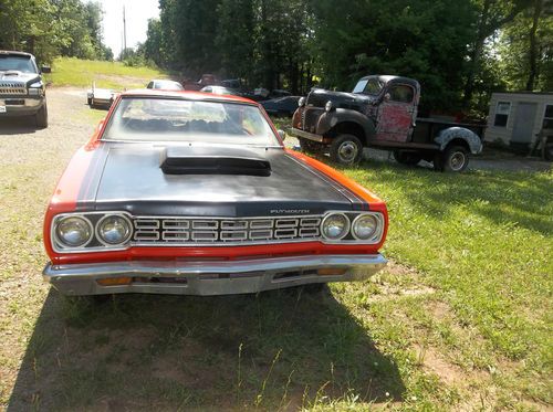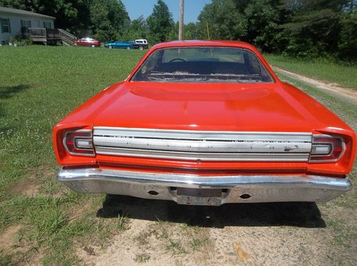 This 1968 Plymouth Satelite (Road Runner Clone). This is a rare car and came with a manual transmission and three on a tree. I am not sure the size of the motor. I have not had this car for long I got it doing some trading. The car does run good and the transmission shifts good. The clutch is good and the frame solid. The floor boards look good in it. All the glass is in the car except for the glass back behind drivers side. The trunk has some patching but need a new trunk pan or finish repair. That trunk is the worst repair that I see on the car. Disc brakes have been put on the front but need to be bled. The car does need complete interior work. This car looks good but is by no means a show car. It does need work. It is a project car that would be nice to fix up for local cruises and car shows. What you see is what I have. I encourage you to come look at the car before bidding. If you want to come look at it please call me and I will give you directions. The car is sold as is. I reserve the right to end auction early as I have it for sale locally. Please DO NOT TEXT ME! If you email I cannot return emails in a timely manner as I am on the road alot. Please CALL ME and I will be very happy to answer all your questions. My number is 540-556-5349. -Joey