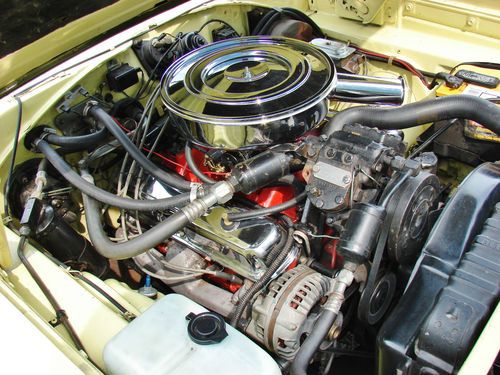 The engine starts right up and just runs smooth as silk, plus it pulls nice on acceleration now that the 4 barrel carb is on there. The original 2V carb and intake go with the car. Dual exhaust with stock type mufflers, that give it a nice sound. there is a am /8 track radio in the dash, plus a hidden am/fm/cd player in the glove box.