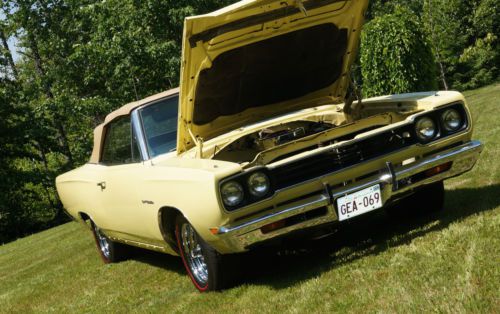 1969 Plymouth Sport Satellite Convertible, VIN# RP27G9G122514 I bought this 1969 Sport Satellite Convertible in the year 2000 with about 41,000 miles showing on the odometer, which is believed to be original. However, I’ve driven this car less than 80 miles in the last decade, so it’s time to sell and move on to something else I’ll actually use. I’ve read that 818 Sport Satellite Convertibles were built and that about 188 were saddled with a 383 V8 of some sort. The rest were 318 cars. This is a 383 2BBL car that, for reasons of sheer vanity, has been switched to a 4 BBL with an Edelbrock Performer intake. The car is generally in great shape, but it has lived a hilariously sedentary life and needs to be driven and tended to on a more regular basis to be considered a real car and not a mere taker-upper of garage space. ENGINE: Rebuilt top to bottom in 2004 with forged pistons and a Comp 260 cam. I run it up to temp every couple of months for shits and giggles. Runs great. Recent oil change. New dual exhaust was installed at the time of rebuild. Trans is a three-speed auto which has not been touched since I’ve had the car. Works fine. Engine build cost me about $5,500 when it was done. New gas tank. Pertronix electronic ignition, aluminum water pump. BODY: Painted the correct yellow in basecoat –clearcoat at a cost of about $7,500. Body is solid with original floors, quarter panels and trunk drops. I have new lower mouldings and the installation clips, but as yet haven’t gotten around to that yet. I guess I need more than 14 years to get it done. INTERIOR: The fender tag indicates this car came with bucket seats, but it had a bench when I got it, so I went with it. Scratch-built leather seat coverings with new foam with new carpets and door panels, etc. Classy and smells like sweet cow porn in there. Total cost of about $7,200. I know, I nearly crapped my pants, too, when I got the bill. WHEELS/TIRES: New chrome Magnum 500s, 15x7, with new redlines. Driven about 34 feet since installed. BRAKES: New Master Power front disk conversion, drums at the rear. SUSPENSION: About seven years ago, hoping to rekindle my relationship with the car, I kind of wanted to ‘restomod’ it (lower it and bolt on big wheels), so I added Magnumforce Racing tubular upper control arms to help alignment after the car was dropped. Never went any further. So much for that. Added KYB shocks. Stock leafs out back. TOP OPERATION: The top functions well, or I should say that it used to, but the system sprung a hydraulic leak, so I don’t use it. It really should have the cylinders replaced. Total cost of that is about $800, best I can tell. CRAP TO FIX: I noticed that the power-steering pump is leaking, so that will need tending to. Over time, it’ll empty enough to make steering both unbearably noisy and difficult. The car also picked up an electrical glitch where it sometimes won’t start with the key. I have to actually cross the terminals on the firewall. Possibly the ignition switch or relay. No biggie, just annoying. Gonna need the rear fender-lip moldings. PAYMENT: Yes, I take payments. Of course I do. Money works as does certified check and wire transfer. To hell with Paypal. $500 is due at auction’s close with the balance due within seven working days. DELIVERY: Send a truck, or pick it up with a truck. Don’t drive it. Clearly, I can hold the car for a reasonable amount of time while you arrange for transport. Message me to discuss if you have unusually weird needs in this regard. Thanks for reading and good luck. |