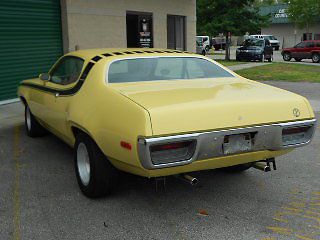 up for auction is a 1972 PLymouth satellite road runner clone. The car was completely taken down to bare metal and repainted less than 6 months ago. The car was made to look like the PLymouth That Daisy Duke drove in the first two seasons of the Dukes of Hazzard Show. The car was painted factory Blaze yellow with the factory Road Runner stripe/decals installed. The car has new brakes, brake lines and wheel cylinders and has new tires as well with less than 500 miles on them. The motor is a Road Runner factory 1972 400 big block that has approx 65,000 miles with edelbrock carb, the rest of the motor is stock. The motor runs strong and does not drip oil or any fluid. The transmission is a column shift automatic 727 transmission and shifts very smooth. the car is an original a/c car but a/c does not work. has the 150 speedo and aftermarket tach. All chrome is original and in above average condition and all lights work perfect. Car has the RoadRunner BEEP BEEP horn. Car has vintage slot mags and dual exhaust. The floors are very solid as is the trunk. THe interior is original and in above average condition, the dash has one crack and the seats and carpet and door panels are in great condition with no rips or tears. All glass is good with no cracks. Car is also a power steering car as well. Car is an excellent cruiser, these are getting harder to find. Winning bidder to arrange for shipping I will assist in any way that I can. $500.00 paypal deposit due within 48 hours of auction end, the rest is due in cash or cashiers check with a 7-10 day clearing period before car can be picked up. NO trades please Email with questions. car is for sale locally so I reserve the right to end the auction early, Sold As is.
