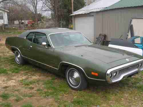 HELLO THIS IS A ONE OF A KIND ORIGINAL 1972 PLYMOUTH SATELLITE SEBRING WITH ONLY 98000 MILES , IT HAS NEVER BEEN WRECKED OR PAINTED (YES THIS IS THE ORIGINAL PAINT) THE CAR HAS THE 318 ENGINE AND AUTOMATIC TRANSMISSION , THE CAR RUNS AND DRIVES GREAT (I WOULD TAKE IT ON A ROAD TRIP WITH NO QUESTIONS ASKED) IT IS A AIR CONDITION CAR AND ALSO HAS POWER STEARING AND POWER BRAKES AND FRONT DISC BRAKES, THE BODY IS IN WELL ABOVE AVERAGE CONDITION FOR A 41 YEAR OLD CAR IT DOES HAVE TWO SMALL RUST HOLES AS SHOWN IN THE PICS ONE IS ON THE BOTTOM FRONT LEFT QUATER PANEL AND ONE IS ON THE BOTTOM RIGHT REAR QUARTER PANEL , IT HAS A FEW KEY SCRATCHES AND DINGS BUT NOTHING MAJOR FOR THE AGE OF THE CAR , THE RUBER SEALS AND GLASS ARE IN GREAT CONDITION AND THE INTERIOR IS 99% PERFECT AND ORIGINAL, THE CARPET IS PERFECT AND DONT SHOW ANT WEAR, IT STILL HAS THE ORIGINAL WHEELS AND PLYMOUTH HUB CAPS IN GOOD CONDITION, I DO ALSO HAVE A SET OF XXR 10.5X18 REAR WHEELS AND 9X18 FRONT WHEELS THAT I WILL SELL EXTRA AS SHOWN IN ONE PIC, ALL THE WINDOWS ROLL UP UND DOWN JUST LIKE NEW , THE TRUNK FLOOR STILL HAS GLOSSY PAINT AND NO RUST HOLES , THIS CAR IS TRULY ONE OF A KIND , I WAS GOING TO RESTO MOD THE CAR BUT EVERYONE HAS TALKED ME OUT OF IT BECAUSE OF ITS ORIGINALITY AND CONDITION, I ALSO HAVE ALL THE ORIGINAL BOOKS AND PARER WORK TO THE CAR AND A CLEAN CLEAR TITLE, THE ORIGINAL TRUNK MAT , SPARE AND JACK ARE STILL IN THE CAR AS WELL , IM SURE I HAVE FORGOTTEN ALOT OF DETAILS SO PLEASE FEEL FREE TO ASK ANY QUESTIONS BEFORE BIDDING, THIS CAR IS SOLD AS IS WITH NO WARRENTY IMPLIED ,