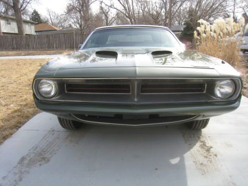 Only -36- 1970 Plymouth Barracuda convertibles were built with the N-code 383 HP (Super Commando) engine with an automatic transmission, only 1 of those came with front & rear "Elastomeric bumpers". This is that one!! It is all numbers matching & includes 2 original build sheets.