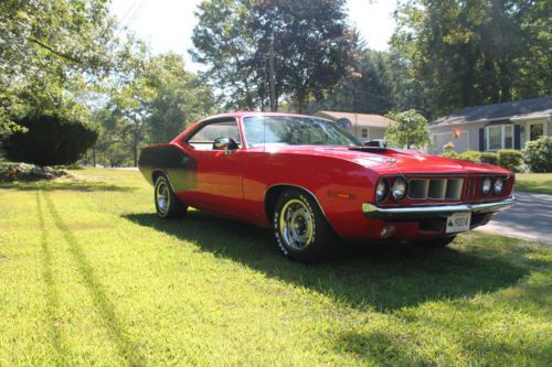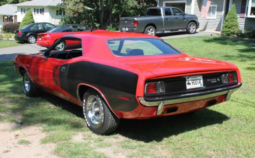 Up for auction is my 1971 Plymouth Barracuda. Please look at the pictures and read the description of the car. The pictures are accurate and the description will be very detailed and honest. This is not a numbers matching car and I would say the restoration is about 90-95% complete. It's a California car and originally had a 318 but it now has a 1972 340 with a 727 transmission purchased from Renee's Country Auto. The engine is 40 over with a 488 cam and roller rockers, big 202 valves on J heads with a 3 angle valve job and hardened seats for premium unleaded gas, new valve springs and a 600CFM Edelbrock carb. Engine, trans, wheels and tires have aprox 2000 miles on them. The front seat covers, door panels and new dash are from Legendary Auto. The paint does have some minor scratches and imperfections but shows very well. Here is a list of what I believe the car needs to complete the restoration. The emergency brake cable comes with the car but will need to be hooked up. The wiper motor needs to be wired in. The passenger rear quarter window is scratched. The speedometer cable comes with car but will need to be hooked up. The front end is in decent condition but the car will come with new upper and lower ball joints. The tail panel looks good but does have a slight bow in the center, I posted pics of the rear from 3 angles. The weather stripping between the door and quarter windows need to be replaced. Please feel free to ask any questions you may have. The car is being sold AS IS and I would encourage you to come by and inspect the car if possible. Shipping is buyers responsibility but I am willing to assist with loading the car onto transporter. There is a non-refundable $500 deposit through Paypal within 24 hours of auction completion. |