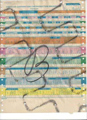 date of Oct 9th 1970 019708 Order number E55 340ci engine D32 727 heavy duty auto