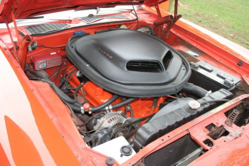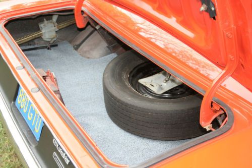 racing mirrors J25 3spd wipers J45 hood pins J81 Rear spoiler M21 drip rail mouldings M25 body sill mouldings EV2 Hemi Orange roof paint U Made for USA B51 Power disk Brakes C16 console C55 Bucket seats G15 Tinted windshield EV2 Hemi Orange body paint H6X9 Black vinyl bucket