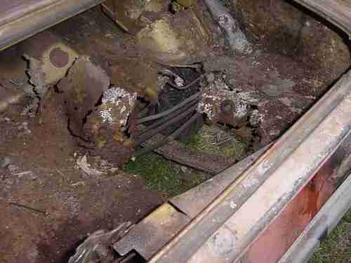 Needs repaired or replaced: Headliner, back seat, carpet, floor pans, trunk pan, rear frame rail