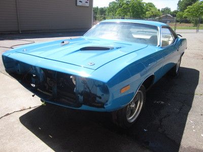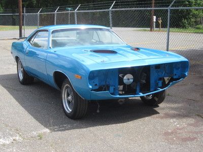 1973 Plymouth Cuda 340 Hemi 4 Speed Petty Blue White Interior Frame Off Restored on 2040-cars