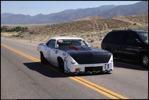 With a pedigree of some 14 Open Road Races, most of which have maintained speeds of 160-190 mph. Arguably the fastest (not quickest) real 'Cuda on the planet. https://www.youtube.com/watch?v=Vh09RK2GLP4 This "Fish" will cruise at 195mph....'nuff said......A couple of things up front..... I would prefer to sell to someone who will continue to race the car. The car is STREET LEGAL in Colorado. Yes it could be "brought back" to stock HOWEVER it would need a new dash pad and trunk floor. The cage and seat reinforcing plates could be removed but the frame connectors would be a major issue so I would advise against removing them. Plus they strengthen up the "frame" (no flex) considerably. TRANSMISSION 833 Overdrive Stock Chrysler Pistol Grip 3rd Gear is 1:1 4th Gear is .73:1 All new seals and gaskets, All internals have been Cryogenically treated for added strength. 500" MOTOR PARTS Block Stock Iron Date Coded 5-18-77 Stock Timing Cover and Balancer Balancing By Denver Balancing Indy Alum Max Wedge Heads All Head work, Porting by Hughes Engines Eagle Crankshaft And H Beam Rods CP Pistons Rings and Pins All Bearings are Clevite with Calico Coatings Billet Main Seal 2 piece from Mancini Racing Howe Alum Radiator Cometic MLS Head Gaskets MSD 6AL Ignition K&N Breathers Custom Air Cleaner with K&N element and filtered lid Accel 8mm wires Hughes Engines Solid Camshaft,Lift .587/.594 With 1.5 Rockers, Duration @ .050 260/264 Lobe Sep 108', Solid Lifters, Custom Cut Pushrods, Rocker Shafts,Valve Springs, Over size Intake vakves, One Piece Valley Pan Mopar Performance Oil Pump, Hemi Oil Pan, Windage Tray,Water Pump and Housing, Electronic Distributor, Valve Covers, Oil Pickup, Dist Drive Shaft Edelbrock Single Plane Intake, 440 Super Victor, Ported and polished by Hughes Engines Holley 1000 cfm Carb, No Choke, Mech Secondaries, Performance modified by Bill Pink Carbs DRIVELINE AND AXLE All parts are new when rebuilt and put together with any heavy duty applications I could find. 2.76 Ratio with stock bearings. Drive shaft is .030 thicker than stock. SUSPENSION & BRAKES Basically a stock setup with disc rears and fronts. Not power set up but old booster and mc is included. Torsion Bar (Hemi) the fatest I could get from M.P. KYB shocks. FatMan Fabrication Drop Spindles. Rear leafs (Hemi) with coil over shocks. Manual steering. SAFETY 5 LP supression fire system with 5 nozzles. 3 pound hand held. Full 6 point roll cage 4 mounted in the frame connectors with roof ladder bar and "spiders web" behind seats and extends into trunk with another cross bar and 2 points in reinforced plates. Removable door bars. Fuel Safe 25 gallon fuel cell with foam insert. Engine restraints. Fuel line routed through cab in a hard line pipe (just like NASCAR does it!!) Sparco seats with 5 point harnesses mounted to reinforced floor pans (plates). Aluminum seperator between cab and trunk (fuel cell). Inversion switch, this disconects power to the fuel pump in the event of a roll over, so no motor run on. External fuel cut off switch on taillight panel. Fuel pump cut off switch on dash and battery kill switch on roll bar at drivers reach. Quick release steering wheel with center pad. Scatter shield and SFI bellhousing. Driveshaft Loop. In short this car will pass tech for any ORR events Unlimited Class. BODY Body is in great condition and straight. Was originally from south Ca. south of Palm Springs so no salt air. Did have the typical front and rear wheel areas on both sides but they were minimal and have been repaired. No other past rust to mention. ADDITIONAL Full set of gages, Fuel, water temp, oil temp, oil press, vacuum, EGT, 2 air fuels, voltmeter, tach, speedo, xmsn temp, axle temp. Set up for oil cooler but not completed. Elec fuel pump. Elec fan. Alum radiator. No back seat. FM/CD radio. |