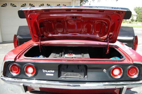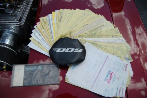 1973 Plymouth Cuda Car started life as a 383 built in Hamtramck, MI This Cuda was built to be a fun car to drive to car shows and cruise ins. The body and styling are very 80’s. A lot of the work and restoration were done in the late 80s. As you can see from the photos I have tons of receipts for mostly all of the work done to this car. I can’t tell exactly when the body work and paint was done, but it was done right. The paint looks excellent and is in great shape. The roses on the quarter glass are etched into the glass, very nicely done. Everything works as it should with this car. Lights, brakes, power steering, gauges all work. I have the factory hood for the car painted the correct maroon color, it does not have a hole cut out for the blower. As for the interior, there are a few gauges in the car. Auto Meter water Temp, and Oil Pressure gauges mounted in the perfect spot under the dash next to the center console. Auto Meter Tach with shift light on top of the column. Fuel level gauge mounted in the center console for the fuel cell. Toggle switch on the dash is for the electric fans that powers off with the ignition. Bell Latch style lap belts. Radio isn’t anything special but works and FM reception is good. Overall the interior is in great shape. The front seats are comfortable and in excellent shape. The rear seats are in good shape as well. The package tray has been refinished and holds 2 aftermarket speakers. The headliner is also in good shape with no tears or sagging. The dash shows no problems or cracking,warping, or discoloring. The trunk holds the 10 gallon fuel cell, 20lb nitrous tank with gauge, battery, and fire extinguisher. The front and Rear bumpers are in good shape and show no signs of the chrome pitting or rusting. The Engine is a 360 with a 671 Hampton supercharger. It has two Holley 750 Carbs, the bodies of the carbs were powder coated red and all other parts were chromed. There is a lot of chrome bits and pieces everywhere under the hood. There was an extreme amount of attention to detail when this car went together. Most of the bolts and nuts under the hood have chrome or brass caps on them and wires are loomed and routed properly and neatly. The Hood hinges are chrome, the intake manifold is polished aluminum, the alternator is chrome, pulleys are chrome. The Nitrous plate kit was installed by someone who obviously knew what they were doing. All the lines are bent perfectly and are a beautiful sight. I was told when we got the car it had a 100 shot of nitrous. It has always been more of a show piece for us and we have not used the nitrous. There is a toggle switch in the center console with the fuel level gauge that is for the nitrous. The trans is a 727 automatic with slap stick shifter, it seems to have a little larger stall, Im thinking around the 3k range. The rear end is an 8-3/4, not sure what gear it is. The power steering is very smooth and the car runs well. It is not a handful to drive like I had first imagined it would be. It is a very easy car to drive and enjoy. Being in FL the only thing it needs is AC. This Cuda is a real step back in time. A lot of older hot rods have been torn down and resto modded for todays constantly changing trends, and that is what makes this car so cool, It is old school hot rodding at its best! I know I have forgot some things. Please ask any questions you may have. The car is for sale locally as well, so I reserve the right to end the auction at anytime. I welcome and encourage any one to come see the car before the auction ends. Please do not bid unless you intend to buy. Thank you! |