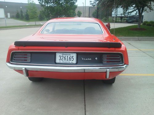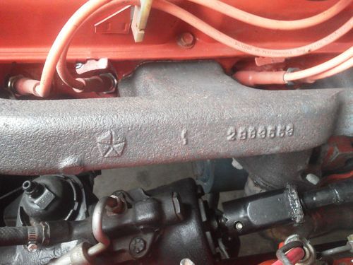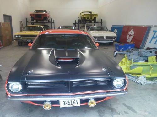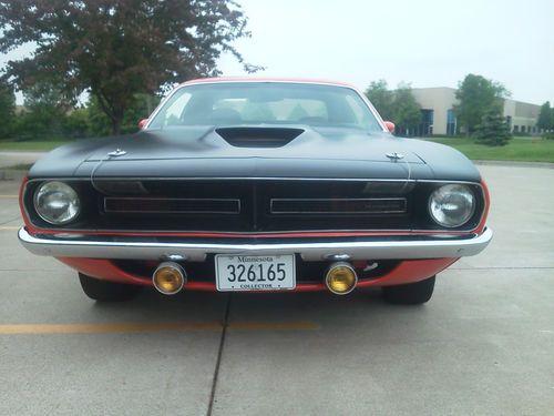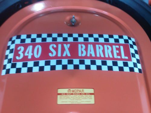 1970 AAR 340x6 Barrel Four Speed, EV2 hemi orange exterior (pictures appear to make the car look red) Correct TA parts such as non matching TA block, TA steering block, J heads, 340 exhaust manifolds. A-833 non matching transmission, 8 3/4 sure-grip rear end with 3.55:1 gears, original fiberglass hood, 974 radiator, electronic ignition, jack & space saver spare. Correct G-60 & E-60 tires. The car was restored about three years ago - painted top & bottom - no disappointments here. All the gauges & lights work except the clock. Small chip in the front grill that could use some repair.