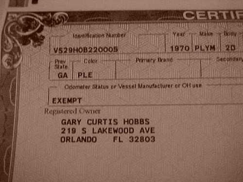 THIS IS A 1970 PLYMOUTH DUSTER 340 FC7 PLUM CRAZY PURPLE WITH WHITE VINYL TOP WITH BLACK SIDE AND BACK STRIPE WITH WHITE INTERIOR BLACK DASH,CARPET HEADLINER THIS IS A MATCHING NUMBER CAR THE VIN ON THE SIDE OF PASSENGERSIDE OF THE BLOCK MATCHES THE VIN ON DASH,DOOR,RADIATOR SUPPORT AND THE TRANSMISSION VIN ON THE DRIVERSIDE MATCH TO AND IT HAS 8 3/4 323 POSI REAR END. I BOUGHT THE CAR FROM THE ORIGINAL OWNER THAT LIVE IN GEORGIA AND IT WAS IN DRY STORAGE FOR LONG TIME SO THE GAS TANK WILL NEED CLEAN OUT I GOT IT RUNNING WITH A GAS CAN BUT WHEN I STARTED TAKING IT APART TO PAINT CAR I TOOK OFF ALOT PART SO THEY WILL NEED PUT BACK ON TO GET IT RUNNING WHILE I HAD THE CARB OFF I REBUILT IT AND IT ORIGINAL 4934S L9 BUILD DATE 12-69 AND I HAVE THE FENDER TAG BUT THE BUILTSHEET WAS IN A HUNDRED PIECES IN THE BACK SEAT. I TOOK IT TO PAINTSHOP AND THEY HAD IT ABOUT 6 MONTH AND THEY' HADN'T DONE MUCH TO IT SO I BOUGHT IT HOME THE HOOD OFF AND DECKLID AND DOORS I HAD THE THE INTERIOR DONE AND DOOR PANAL THE BODY WAS IN PRETTY GOOD SHAPE THE FLOORPANS HAS A FEW PINHOLE AND TRUNK HAS A FEW PINHOLE THE BOTTOM LOWER QUARTER HAD A LITTLE RUST THE ROCKER LOOK GOOD AND THE FRAMERAILS LOOK GOOD IT STILL NEED WORK IT WILL NEED HEAD LINER AND CARPET AND VINYL TOP I HAVE A MINT GRILLE AND I HAVE A NICE DAHPAD I AM WORKING ON PAINTING THE DOORJAM,TRUNK,ENGINE BAY RIGHT NOW . I HAVE A CLEAR TITLE IN MY NAME IT HAS STANDARD DISK BRAKE AND IT HAS 553 AND 559 MANIFOLD AND ONE YEAR ONLY VALVE COVER AND IT HAS THE ORIGINAL AIR CLEANER AND IT HAS X HEADS ASK ALL QUESTIONS BEFORE BIDDING I WILL PUT MORE PICTURE ON LATER IF YOU NEED MORE INFO CALL GARY AT 407-731-4587