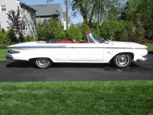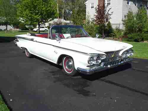 Super Rare, Solid 1961 Plymouth Fury Convertible, Golden Commando 4BBl engine, correct original engine loaded with options. This Fury was stored in a barn for about 15 years, we replaced the gas tank, sending unit, tuned it up, replaced the master cylinder, cleaned it and it is what you see here in the pictures. This Fury is loaded with options, 361 V8, 4BBL Golden Commando engine, correct, p.s. p.b. automatic, p. seat. pwr windows, pwr seat. dual mirrors, grille guard, dual exhaust. It runs like new, drives great, and very fast, a very solid 60's Plymouth. The Fury was painted in the late 70's, and other than cleaning has not been touched since then, great floors and trunk, super solid underneath. There is a dent in the front edge of the hood, that happened in the barn some years ago. The top is very nice, all the power windows operate. This car is stunning, makes a statement anywhere you go. You wont see another one anytime soon.. Please look at the pictures, I have more, ask questions, read the description and be serious about bidding, this is a contract to buy.. I have 100% positive feedback and will be disposing of more of my collection and want to keep my feedback that way.. Its a very nice, rare, drivable, desirable collectible "top of the line" Fury.