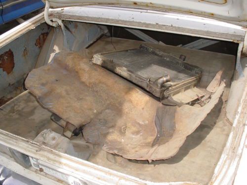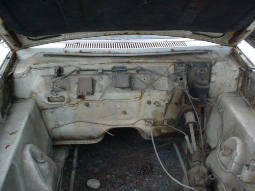 You're looking at a 64 Fury that isn't pretty. Based off the VIN code it began as a 6-banger w/auto, but it looks like someone in it's past converted it to a 4-speed...and didn't exactly do a good job either. There's rust on all four lower fender panels, (the floor boards seem ok) and it looks as if the upper rad support has been cut off.(???) There's what looks like a replacement tunnel cover section and a radiator in the trunk, but I have no idea if these are actually for this car. No grill, inner door skins, right tail light assembly, push button shifter stuff, assorted trim pieces, and hood hinges.(all apparently stolen while it's been in my yard!...oh joy) Good news is the title & VIN plate do match, and this car isn't so bad that it has no potential.