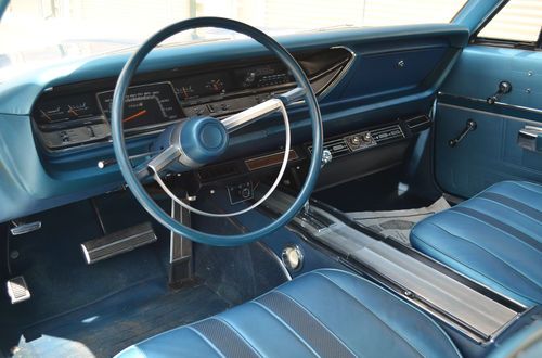 Pristine 68 Fury III Sport Coupe with rare Bucket Seats and center console. Sparkling blue metallic paint done to a high standard. All factory trim in excellent condition with the interior nearly as it came from the factory. Dealer A/C all there but needs charging. This Fury is a one of kind for the serious MOPAR collector. It is laser straight with no sign or rust, rot or body work. TMU but it very well may be what is shown. Judging from the condition of the interior and engine and trunk, this Fury has been cared for all of its 45 years. This is without a doubt the nicest of this breed I have ever encountered. I am thinning my collection and hate to part with it, but something must go! You will not be disappointed. The only flaw I noticed was that the rear bumper had an amateur remove a small dent and the surface is not smooth in a 6" portion toward the middle. Call Bob 970-217-5584 with questions.