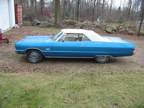 This car needs restoration. It has a radio, power windows, power steering, power brakes, power top and air conditioning. The antenna for the radio is broken, but I have a good one that goes with the car. I always like low production cars and they are not seen at every show that you attend. The engine runs and sounds good. It has a Holley carb with no choke and a Morso air cleaner. If I were to keep it, I would put the factory carb and air cleaner back on it. With no choke, it makes it hard starting. The Sport Fury 383 has a factory 330 horse power. 40 more horse power than cheaper model cars. The door panels are in good shape, the front seats need to be recovered. The heater core was leaking and removed and is in the trunk. Everything was put back together in the dash. There is one dash vent missing. I have seen them available on ebay for about $25.00. The car has a new battery. The brakes work. I drove it about 15 miles around the back roads about a year ago and the transmission seemed to shift properly. There are three small rust holes in the trunk floor, but nothing big. I found no rust in the rest of the floor. I think if you had some time and did a few things, you could be driving it this summer and do the other things it needs next winter. 60's cars are going up in value especially low production convertibles with all powers and factory air. Please ask all questions before bidding.