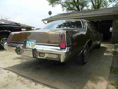we have a very clean 78 plymouth fury with only 16000 sixteen thousand actual miles this car runs very well and has been kept in a garage its whole life im the third owner the first 2 were related they just never drove it still has factory spare tire never been used and front tires are the factory tires rear has been changed to radials factory tires are bias ply and there not rotted or cracked car drive very well for a old car every thing works except clock and the wipers need a linkage bushing but the motor works trunk looks like new under the mat car does have a few small chips and dings from normal use i have not found any rust any where i removed the fuel tank and drained the old gas rebuilt the carb installed new plugs cap rotor wires and the belts and hoses were replaced by previous owners this car is a real time capsule previous owners had dealer install speakers in the rear and front for the stereo the car has not been detailed this is the condition it was in when i found it i welcome you to come and look at the car in person if you can if you want to discuss the car further you can call me at 614 519-7813 until 9 pm ohio time bidders with 0 feedback need to contact me befor bidding please car is a v8 318 automatic power brakes steering no frills car with no air conditioning thanks for looking