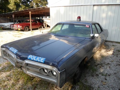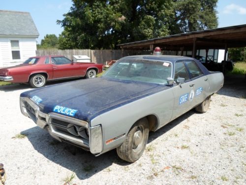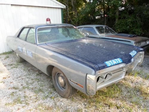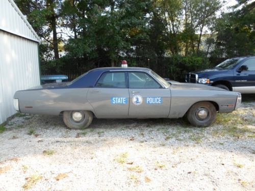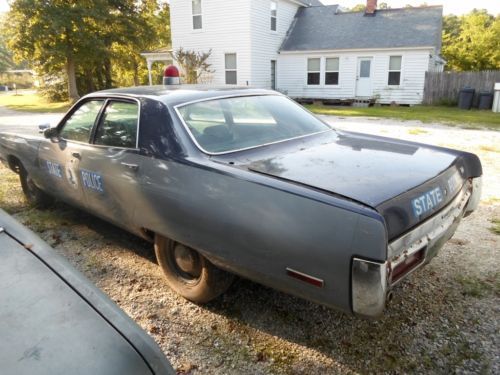 It always draws a crowd at car shows. The paint is correct VA State Police colors with the blue/grey paint break. All of the paint and body work is done and it has all of the correct, date coded VSP police equipment including a working radar unit, Motorola radio, and siren. It was in service from 1972-78 and then went on to New England where it was used by a small sheriff's department until 1985. I have all of its history documented including original VA State Police fleet paperwork. This car is a rare find. The interior of the car is the roughest part and still needs some restoration work, mainly the dash and gauges. The door panels are in OK condition, the seats covers have some minor tears and the headliner needs to be installed. I have a new one from Legendary that comes with the car. The original 440 has been recently rebuilt and it runs great. The transmission is the original HD 727 automatic but it will need to be rebuilt, it will not engage drive. It has an 8 3/4" rear with 3.23 gears. It also has power steering and brakes. Surprisingly, it came from the factory with air conditioning. The only rust on the car is on the rear bumper from where the chrome began to peel off. The rest of the chrome and trim are in good shape. I have owned this car since 1999 and representing it the best I can. The car is also for sale locally and I reserve the right to end the auction anytime. This is an auction and I will not reveal the reserve. |