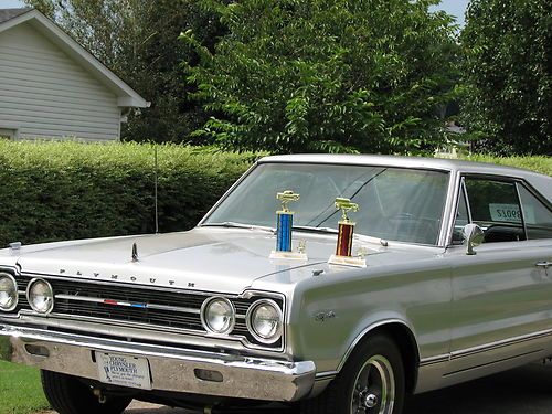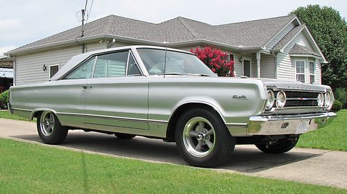 1967 PLYMOUTH SATELLITE ORIGINALLY A 383HP 4 SPD CAR.NOW IT IS A 440 WITH TREMEC 5 SPD.ENGINE WAS COMPLETLY REBUILT LESS THAN 5000 MILES AGO.IT HAS ELECTRONIC IGNITION, IT WAS REBUILT TO HIGH PERFORMANCE SPECS.ALUMINUM BECOOL RADIATOR,DUAL ELECTRIC FANS.BODY IS VERY STRAIGHT WITH VERY NICE MODERN CHRYSLER BRIGHT SILVER PAINT,ABSOLUTLY NO RUST. QUARTERS ROCKERS FENDERS TRUNK AND AROUND WINDOWS ARE RUST FREE.PAINT CAR WAS PAINTED SEVERAL YEARS AGO.. DOES HAVE THE USUAL NICKS AND SCATCHES BUT PAINT LOOKS GREAT FROM ONE FOOT AS IT DOES FROM THIRTY FEET.OVERALL AS YOU CAN TELL BY THE PICS ITS A BEAUTIFUL CAR.BUMPERS ARE RECHROMED AND FLAWLESS.FRAME RAILS ARE SOLID FROM FRONT TO BACK.CAR STILL HAS ORIGINAL UNDER COAT.AT SOME POINT IN THE PAST HALF QUARTERS WERE INSTALLED ALONG WITH PATCHING OF FRONT FLOORS BY A PROFESSIONAL. INTERIOR IS BLACK AND IN VERY NICE CONDITION.NEW CARPET,HEADLINER IS VERY GOOD.NEW DASH PAD,DOOR PANELS VERY GOOD,BUCKET SEATS WERE WHITE AND HAVE BEEN DYED BLACK AND SEATS SHOW SOME WARE ON BOTTOM.DASH LOOKS GOOD.ALL FACTORY GUAGES WORK.HAS A CUSTOM OIL PRESSURE GUAGE THAT SHOWS 50IBS WHEN WARMED AND RUNNING.OIL IS SO CLEAN YOU HAVE TO LOOK HARD TO SEE IT ON THE STICK. TWO CUSTOM GUAGES VOLTS AND WATERTEMP ARE NOT HOOKED UP.SUNVISORS GOOD.NEW SILL PLATES. DRIVE TRAIN IS TOP OF THE LINE WITH TREMEC 5 SPD TRANSMISSION.CLUTCH IS MCCLEOD TWIN HP.REAR END IS 8.75 WITH 3.55 POSITIVE TRACTION. IT HAS FOUR WHEEL DISC BRAKES BY SSBC. EXHAUST IS TOP CONDITION WITH HOOKER HEADERS AND ALUMINIZED X PIPE AND DYNOMAX MUFFLERS AND TAIL PIPES WITH STAINLESS STEEL TIPS. ALL FRONT END COMPONETS ARE NEAR NEW.CAR DRIVES VERY STRAIGHT.CAR IS COMFORTABLE AND FUN TO DRIVE. GREAT CRUISING CAR . NICE AND QUIET IN PASSENGER COMPARTMENT.CAR HAS A NICE RUMBLE FROM OUTSIDE.WHEELS ARE IMACULENT FRONTS ARE 15/7 REARS 15/8.TIRES ARE NEAR NEW. CAR HAS A NEW HEATER CORE.PREVIOUS OWNERS RAN CAR WITHOUT HEATER HOSES CONNECTED.I HAVE NEW HOSES AND NIPPELS THAT GO WITH CAR.CAR DOES NOT HAVE A KEY IGNITION BUT HAS A NICE CUSTOM TOGGLE ON SWITCH AND PUSH BUTTON START.IF NEW OWNER WANT TO PUT IT BACK TO KEY IGNITION NEW ONE GOES WITH CAR . I HAVE LOTS OF DOCUMENTATION OFALL WORK DONE TO THE CAR I HAVE NAMES AND PHONE NUMBERS OF PREVIOUS OWNERS..I LOVE THIS CAR BUT THE REASON IM SELLING IS I HAVE FOUND MY DREAM CAR A 70RR AND CANT AFFORD BOTH.NEW OWNER WILL NOT BE DISAPPOINTED.IVE TRIED TO DESCRIBE AS BEST AS I CAN CHECK MY EBAY FEEDBACK. BUT IM SURE T HAVE LEFT SOMETHING OUT .CAR IS FORSALE LOCALLY AND I RESERVE THE RIGHT TO END AUCTION IF IT SELLS LOCALLY. AT THE END OF AUCTION 500.00 PAYPAL DEPOSIT REQUIRED WITHIN 24 HOURS. BALANCE TO BE PAID BY CASHIERS CHECK OR CASH WITHIN 7 DAYS.I CAN STORE CAR FOR AS LONG AS NEEDED AS LONG AS ITS PAID IN FULL.BUYER MUST MAKE SHIP ARANGEMENTS I WILL ASSIST WITH SHIPPING. ANY QUESTIONS ABOUT CAR YOU CAN EMAIL tramms1@att.net OR CALL 615 444 6808 THIS IS A NO RESERVE AUCTION