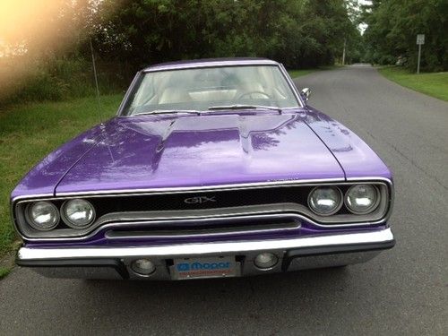 For sale is my 1970 Plym GTX ......Plum Crazy Purple..... Number Matching..... This GTX had no rust so no sheet metal has ever been replaced. If you have any questions I would prefer to be contacted by phone # 518-462-5873.Thanks