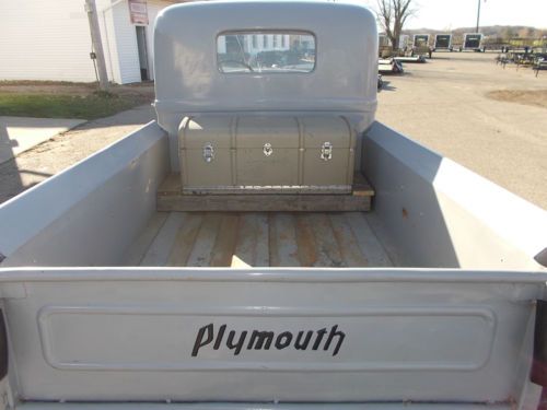 1937 Plymouth Pickup Truck This is an older amateur restoration...Paint has a shine but not perfect...This may not be a show winner but is a good, fun driver to enjoy...Being a "Plymouth" you can say this is a little less common also....Check out the pictures and they will give you a good idea on condition... The Str-6 seems to run out good with strong oil pressure...Recently the carb and fuel pump has been rebuilt...It does not look as if the engine has ever had a full rebuild...Driving condition should be considered fair...The left rear brake does stick....Odometer works but the lights are not hooked up...There is some filler in the fenders...Extra parts include four extra fenders, additional gauge cluster and assorted parts... The reserve has been set at a very reasonable...$10,900... If you have any questions or need more information please call 734-241-9403...The truck is available for test drives or inspection during normal business hours... Due to vehicle age all sales are "as is condition"...Buyer is responsible for any applicable tax or title fees along with vehicle pickup or shipping...We require payment in full within 7 days of the close of auction... |