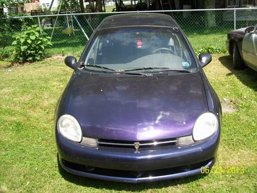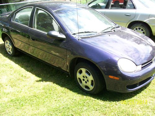 this auction is for a 2000 plymouth neon purple in color automatic well maintained it has new brakes and 2 new front tires and a new battery there is a little chunk out of d-side seat the head liner hangs few scratches here and there very sound motor with alot of life left on it no dents or dings from what i see no oil leaks i need to get rid of it i have too many vehicles this car will be sold AS IS would be a great starter car for a young lady any questions please contact me also this car will be listed locally also NO RESERVE on it as always thanks for looking