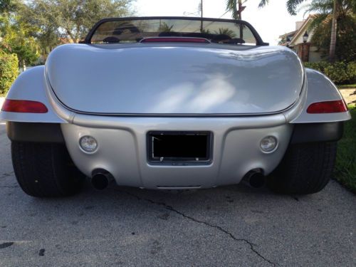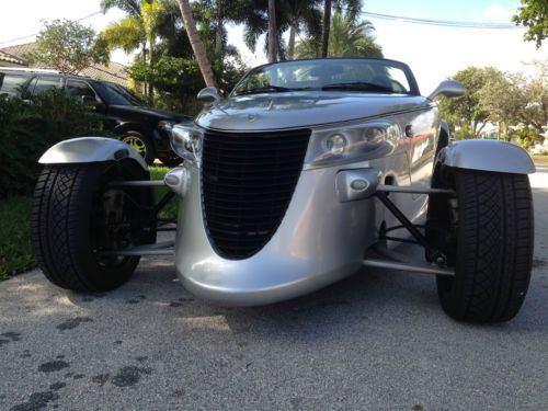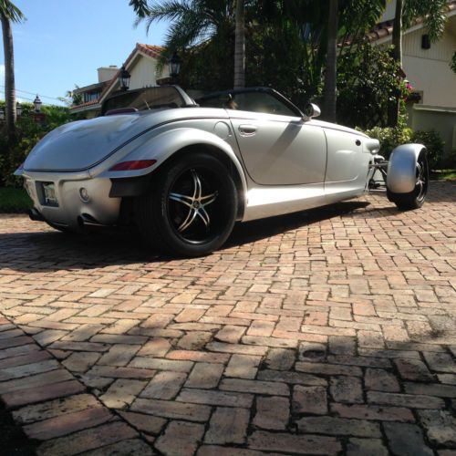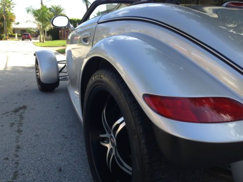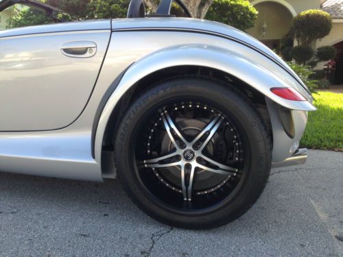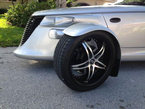 2001 Plymouth Prowler only 10,542 miles. Hardly broken in. Always garage kept. Updated stereo Jensen 9314 touchscreen with back-up camera, navigation, Bluetooth, new updated speakers all around (polk audio )kenwood 1000watt amp, pioneer 10" subwoofer in trunk, Cat eye HID Headlamps, Halo light rings on headlamps ,Tom Mills front and rear panels ( I have the original panels and bumpers, custom magnaflow exhaust. Custom Wheels and tires with only 100 miles on them ( I have the stock chrome rims and tires)owner's manual, service manual, and new hood lift arms.Blacked out side running lights, color coordinated light housings. I also have a custom wind screen that clips in. The car is in excellent condition with many upgrades. Call Mitch 954-465-4570 |