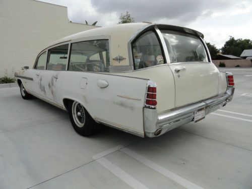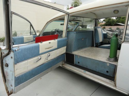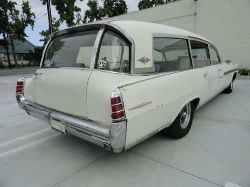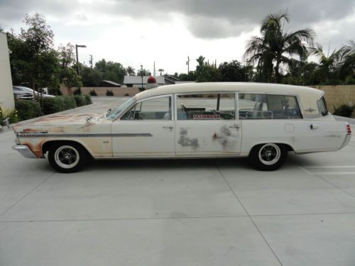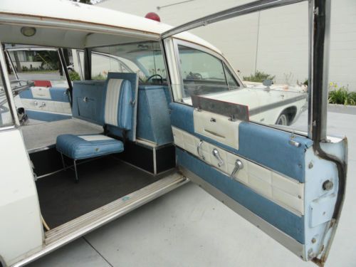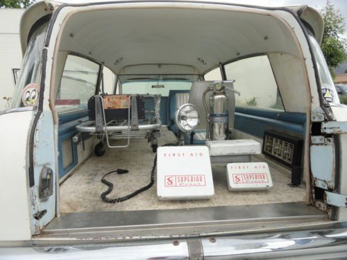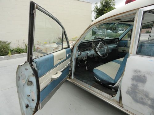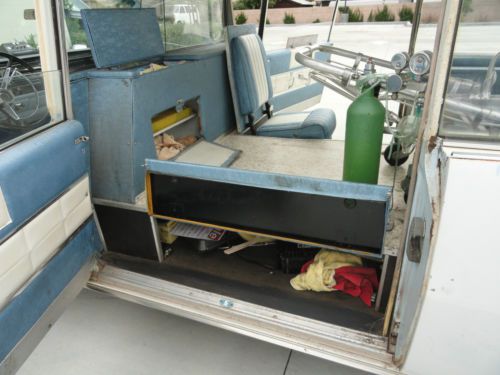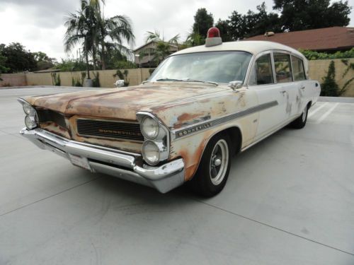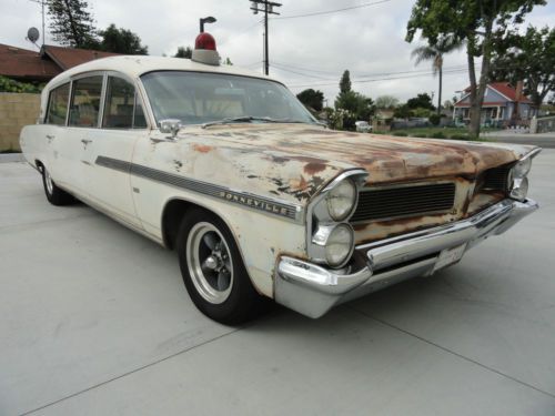 Newly installed items ,New Radiator with hoses ,Newly Rebuilt Original Carter Carburetor, New Exhaust, Newly Rebuilt complete Brake system with front disc brakes, Newly Cleaned Gas tank/lines. New Fuel Pump, all new fluids trans/ motor. 4 New Shocks, New 15" American racing rims with very Nice new tires , Heater does work very well (very warm) Ac is complete but not working ,all lights work and Siren was rebuilt (New Brushes) also rebuilt the cherry on top. "UPDATE" comes with lots of extra's ( FIRST AID KITS , ETC that where in Ambulance when purchased (see pics) For Sale is this Very RARE ONLY 138 EVER BUILT OF THIS MODEL 1963 Pontiac Bonneville AMBULANCE - COMBO- FUNERAL -COACH built by Superior Coachworks , This Rare AMBULANCE -COMBO- FUNERAL COACH is 21' LONG and is my daily driver on the weekends and to local So Cal Car shows and the beach , It's a real head turner, It's all original with gurney and oxygen tank and I Installed front disc brakes with dual brake cylinder, and a new windshield/gasket, plus those really cool side view mirrors I installed , It drives very smooth on the freeway about 75-85 mph no problem no shacking front end is very nice ,AC is complete but never attempted to refresh, interior is all original and I seen only 1" tear in rear of side by Gurney, 3 windows have cracks but I do have them as I own a auto glass shop when sold I will install. headliner is in excellent condition no rips or repairs.
