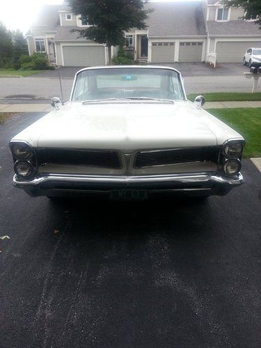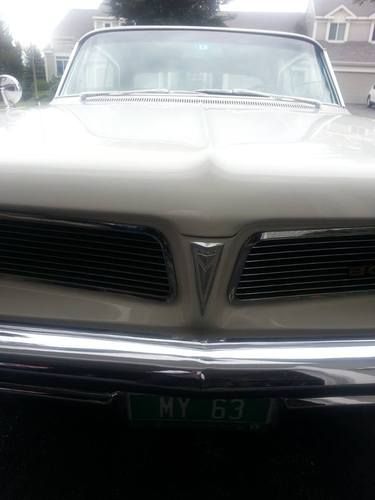 THIS IS A GREAT EXAMPLE OF A 1963 PONTIAC. HAD A COMPLETE BODY RESTORE IN 2012. THE PAINT IS EXTREMELY NICE AND VERY SHINY. THE BODY WORK TOOK OVER 3 MONTHS. THE INTERIOR WAS FULLY REDONE THIS SPRING WITH ALL NEW SEAT COVERING, CARPET AND LINER. THE ENGINE WAS REFRESHED WITH NEW CAM, VALVE SPRINGS, LIFTERS AND BEARINGS. THE TRANSMISSION WAS REDONE WITH LIKE NEW IN 2012 AS WELL. THIS CAR HAS HAD THOUSANDS OF DOLLARS IN RESTORATION WORK DONE IN THE PAST YEAR. STERING WHEEL WAS PROFESSIONALL RESTORED TO ORIGINAL AS WELL.THE UNDER CARRIAGE IS IN FANTASTIC SHAPE AS WELL. THE PICTURES WILL SPEAK FOR THEMSELVES. THERE IS ALSO A ALPINE AM/FM CD AND BLUETOOTH STEREO IN THE GLOVE BOX. THIS UNIT IS WIRELESS REMOTE CONTROL WITH AMP AND SUB AND FOUR SPEAKER SOUND. I HAVE RECEIPTS FOR EVERYTHING DONE, INTERIOR $5,400, BODY AND PAINT IN CAMEO WHITE $13,000, STEERING WHEEL $1300, TRANSMISSION $1575, STEREO $1700. AND THESE ARE JUST THE BIG ITEMS. THIS CAR IS A REAL HEAD TURNER AS IT LOOKS BEAUTIFUL. THE BODY IS EXTREMELY STRAIGHT. THE UNDER CARRIAGE IS SO CLEAN AND VERY SOLID. THIS WILL MAKE YOU A GREAT CAR. IT HAS GREAT CURB APPEAL AND IS EXCELLENT FOR A 50 YEAR OLD CAR.