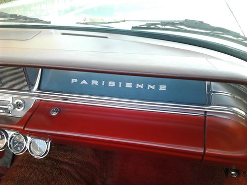 For sale is this beautiful 1963 Pontiac Parisienne Convertible. This is a rare Canadian built Pontiac virtually identical to its American sister the Bonneville. During this time Canadian Pontiacs came off the same assembly line as the Chevrolets and in an effort to save time and money, the same drivetrains were used for both Pontiac and Chevy"s. This "63 is basically a 1963 Chevy Impala with a Pontiac Parisienne body! The best of both worlds, Chevy running gear, trans/engine, with Pontiac styling on top. So when someone stops to ask you if you have the 389 engine, and they will, you will have a fun conversation explaining how a Pontiac came from the factory with a Chevy engine! You will also be able to source from vendors selling Impala parts which helps when you have such a rare vehicle.