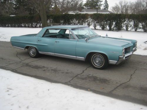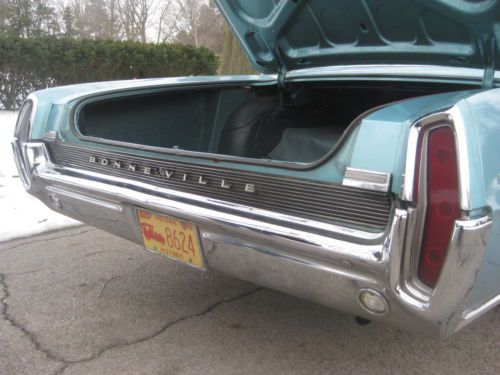 1964 PONTIAC BONNEVILLE ALL ORIGINAL ***BELIEVED TO BE 60,078 MILES*** **2 OWNER VEHICLE** ***A LOT OF DOCUMENTS, BOOKS, AND RECEIPTS*** ***DATA PLATE OPTIONS*** - 1E (TINTED GLASS) -1X ( POWER WINDOWS) -1Y ( PADDED DASH) -2A ( FOAM FRONT CUSHION) - 2M ( AUTOMATIC TRANS) -3B ( REAR WINDOW DEFOGGER ) -3K ( DOME READING LAMP ) -5W ( RETRACTABLE SEAT-BELTS ) FIRST PURCHASED NEW BY A MR. MAGGARD DOUGLAS HERE IN INDIANAPOLIS,INDIANA AT A LOCAL PONTIAC DEALERSHIP, ON APRIL 30TH 1964. MR. MAGGARD HAD ONE OF THE HIGHEST OPTION PLANS THAT GM OFFERED IN 64. THE CAR HAS A LOT OF POWER OPTIONS, AND THEY ALL WORK. P/S P/W 8 WAY P/S P/B AND THE RADIO WORKS. THIS CAR IS VERY ORIGINAL. HOLDING THE ORIGINAL PAINT WITH VERY LITTLE WEAR. SOME LIGHT CRAZING ON ONE SPOT ON THE TRUNK. VERY MINOR SPOTS AND SCRATCHES. SOME NICKS AND TOUCH UP ON DRIVERS DOOR. CAR STILL HAS A NICE SHINE. YOU ARE LOOKING AT AN ORIGINAL UNMOLESTED PONTIAC. ALL ORIGINAL INTERIOR WITH NOTHING CHANGED.THE PADDED DASH ISN'T CRACKED EXCELLENT HEADLINER WITH NO RIPS OR TEARS. SEATS ARE ORIGINAL AND DO NOT HAVE ANY RIPS OR TEARS. CARPET IS ORIGINAL WITH WHAT LOOK TO BE THE FACTORY PONTIAC FLOOR MATS.THE MATS HELPED SAVE THE CARPET. INTERIOR CHROME IS IN VERY NICE SHAPE! AGAIN THE PADDED DASH IS IN EXCELLENT SHAPE. NO CRACKS! INTERIOR IS IN BEAUTIFUL CONDITION,AND THE STEERING WHEEL IS BEAUTIFUL. THE EXTERIOR CHROME IS IN GREAT CONDITION,WITH ALMOST NO PITTING. MECHANICALLY THE CAR IS VERY STRONG. DRIVES GREAT AT ALL SPEEDS.NO EXHAUST SMOKE WHEN YOU PULL AWAY FROM A STOP. CAR HAS BEEN SITTING IN A GARAGE FOR OVER 20 YEARS WITH REGULAR STARTS AND A LITTLE DRIVING. THE TIRES LOOK NEW!! 95% TREAD LEFT!! RECEIPT!! RECENT BRAKES AND BRAKE LINES!! $452.72 FOR ALL BRAKES ( RECEIPT INCLUDED WITH ALL OTHER DOCS) NEW BATTERY!! FROM MY DOCUMENTATION AND RECEIPTS,AND CONDITION OF THE CAR,MAKE ME BELIEVE THE MILES TO BE TRUE. THE CAR LOOKS TO ONLY HAVE 2200 MILES PUT ON SINCE 1978. ALL GAUGES, LIGHTS, RADIO, ALL WINDOWS WORK. POWER SEAT WORKS. GAS GAUGE TEMP GAUGE ALL NOBS,WIPERS AND EVEN WINDSHIELD FLUID SPRAY WORKS. THE CAR IS IN OUTSTANDING CONDITION FOR ITS AGE AND IS NOT A SHOW CAR. ITS A TRUE SURVIVOR. YOU ARE BUYING ORIGINALITY. CAR IS BEING SOLD AS -IS. CAR CAN BE SEEN HERE IN INDIANAPOLIS, IN. THE PICTURES WERE TAKEN SUNDAY JAN 26TH. THE ONLY DAY THAT HASNT BEEN BELLIGERENTLY COLD AND STREETS COVERED IN SNOW. CAR HAS A CLEAN CLEAR TITLE IN MY HAND!! CAR HAS NO RUST!! VERY SOLID FRAME, ROCKERS, FLOORS. ALWAYS GARAGED!! MORE PICTURES UPON REQUEST!! CALL WITH ANY QUESTIONS!! 303-880-6791 BID TO WIN!! LOW RESERVE. A BUY IT NOW CAN BE ADDED. RESERVE PRICE WILL NOT BE ANNOUNCED |
