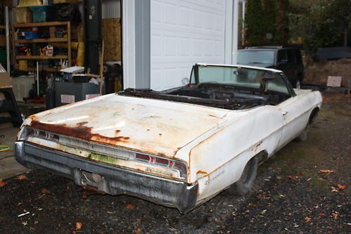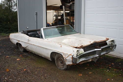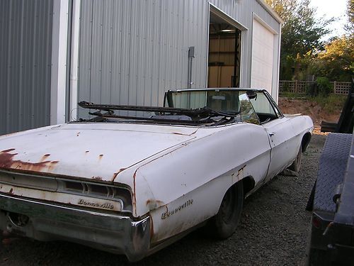 1967 Bonneville convertible for sale, needs full restoration. Have many extra parts, including; Grill, front bumper, radiator, core support, right fender, hood, both doors, windshield, front valence, and much more.